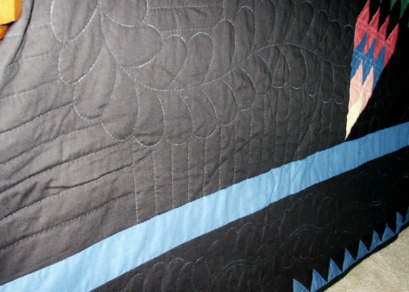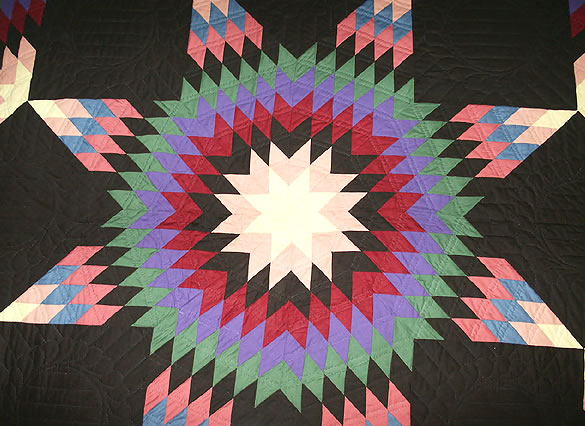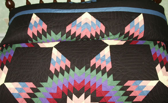This quilt has been sold. We'd be happy to check with the quilters we work with to see if a similar quilt is nearly completed. Or if you'd like to place a custom order for this quilt, please email us, or call at 610-880-0107, and we can discuss fabric colors, pattern, quilting designs and size. You can also supply us with fabric of your choice, as long as it is 100 percent cotton, or a cotton-poly blend.