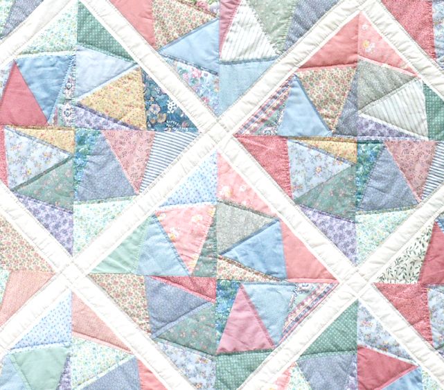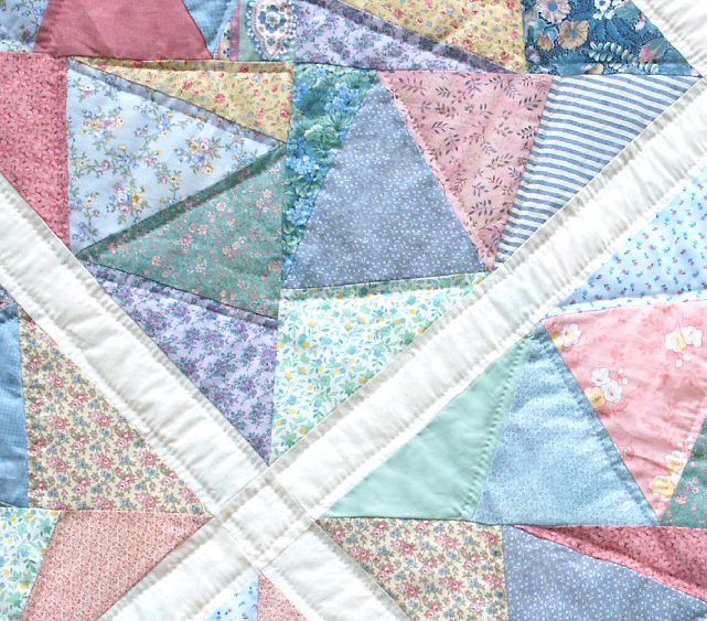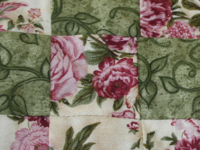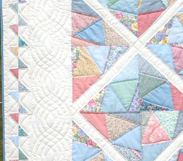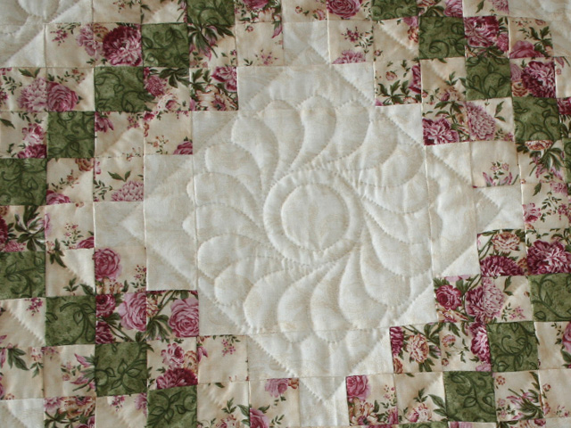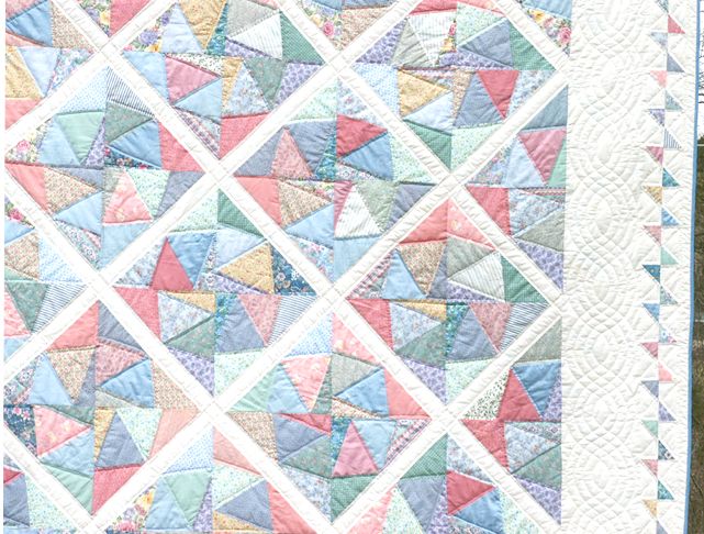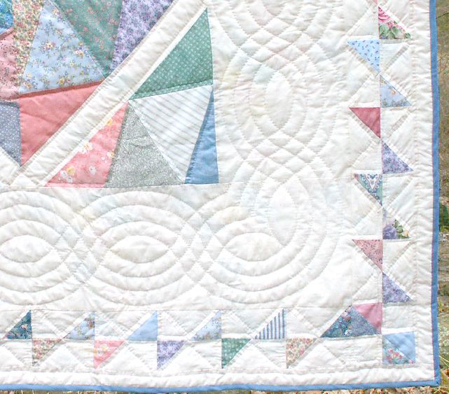 This quilt has been sold. We'd be happy to check with the quilters we work with to see if a similar quilt is nearly completed. Or if you'd like to place a custom order for this quilt, please email us, or call at 610-880-0107, and we can discuss fabric colors, pattern, quilting designs and size. You can also supply us with fabric of your choice, as long as it is 100 percent cotton, or a cotton-poly blend.
