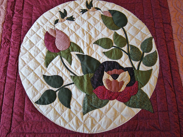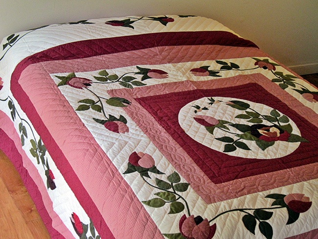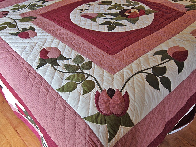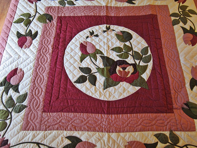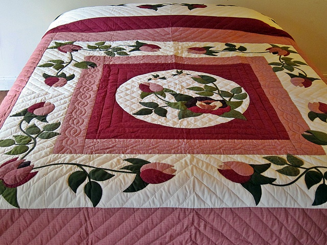 It has a wonderful border. It brings a marvelous garden feel to the room. Quilted by an Amish woman who as well as being an excellent quilter has a creative flair combining fabrics and colors. She lives in Lancaster County. $970.00 Product ID: q159 |