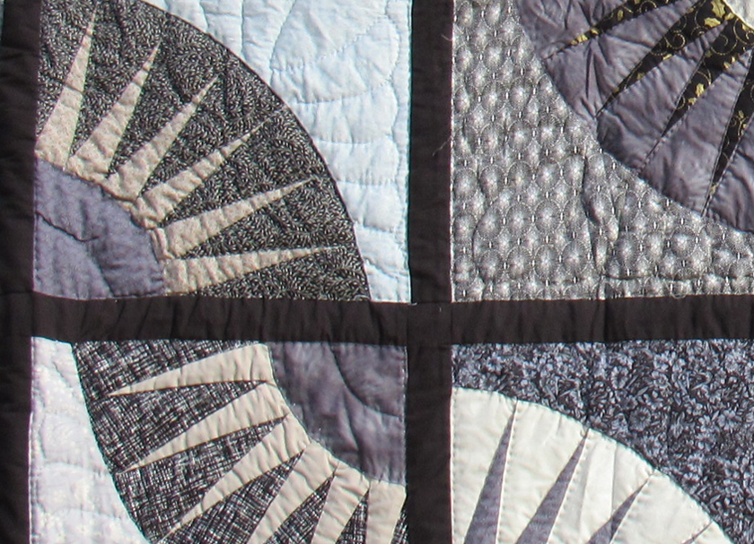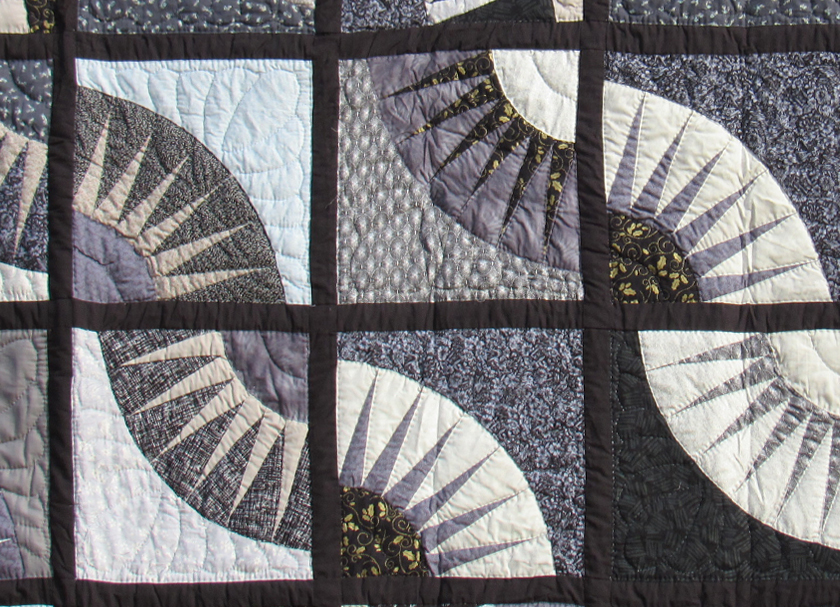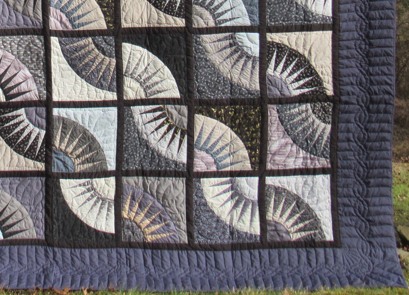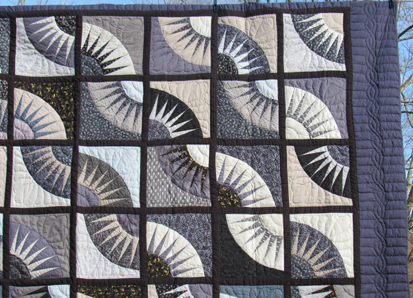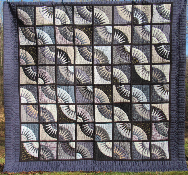 Large Queen or King SizeThe stitching is a  high quality with about 6 to 7 stitches per inchInitialed and dated in embroidery by the Quilter on the backReady to ship This is a striking quilt and perfect for contemporary decor.It be used for a wall hanging to make a magnificent