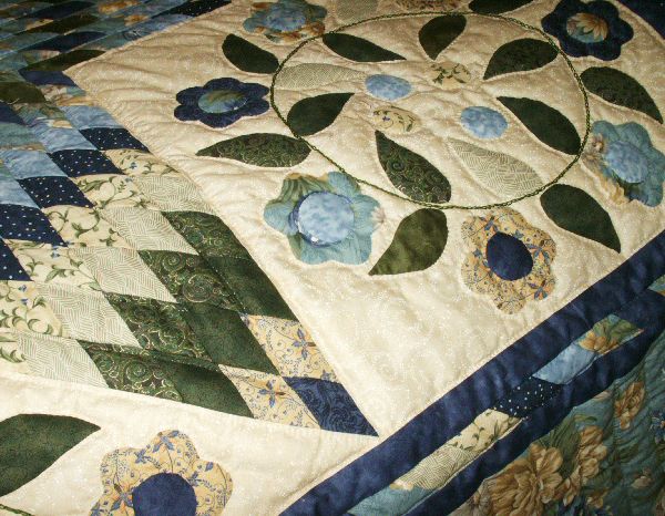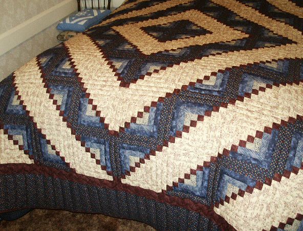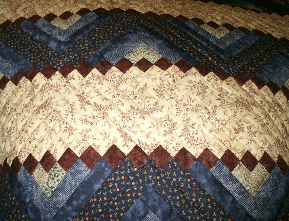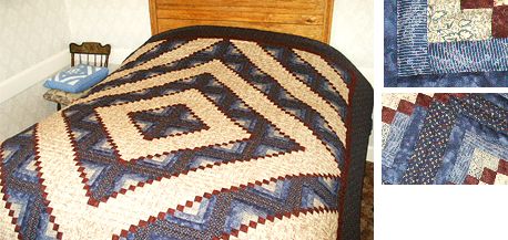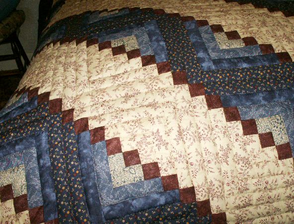 This quilt has been sold. We'd be happy to check with the quilters we work with to see if a similar quilt is nearly completed. Or if you'd like to place a custom order for this quilt, please email us, or call at 610-880-0107, and we can discuss fabric colors, pattern, quilting designs and size. You can also supply us with fabric of your choice, as long as it is 100 percent cotton, or a cotton-poly blend.
