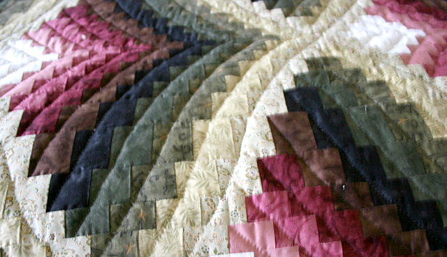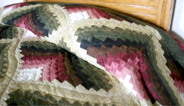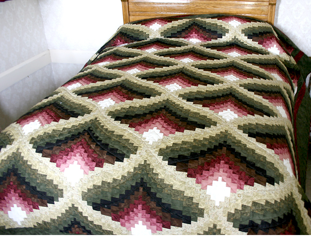 This quilt has been sold. We'd be happy to check with the quilters we work with to see if a similar quilt is nearly completed. Or if you'd like to place a custom order for this quilt, please email us, or call at 610-880-0107, and we can discuss fabric colors, pattern, quilting designs and size. You can also supply us with fabric of your choice, as long as it is 100 percent cotton, or a cotton-poly blend.
