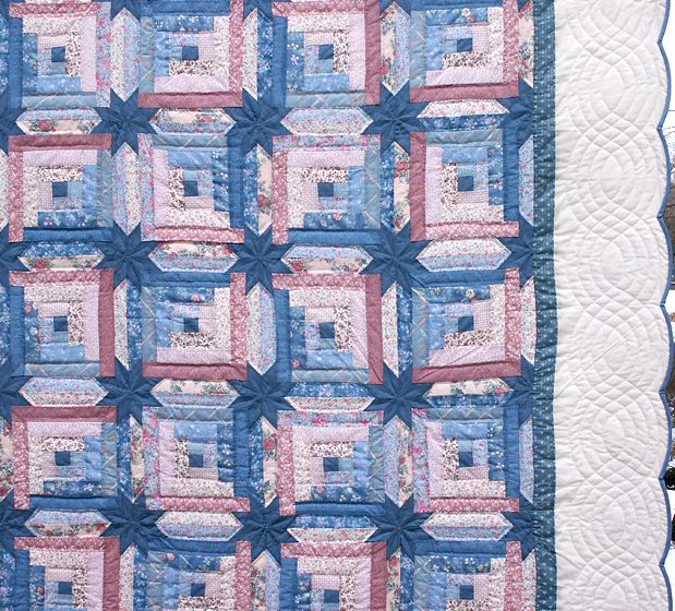 This quilt has been sold. We'd be happy to check with the quilters we work with to see if a similar quilt is nearly completed. Or if you'd like to place a custom order for this quilt, please email us, or call at 610-880-0107, and we can discuss fabric colors, pattern, quilting designs and size. You can also supply us with fabric of your choice, as long as it is 100 percent cotton, or a cotton-poly blend.