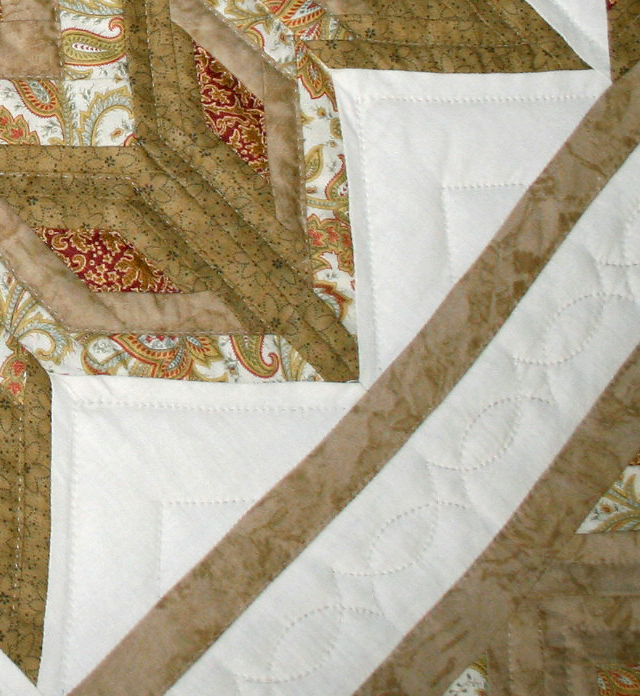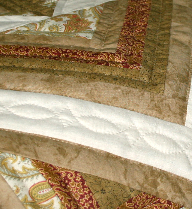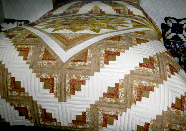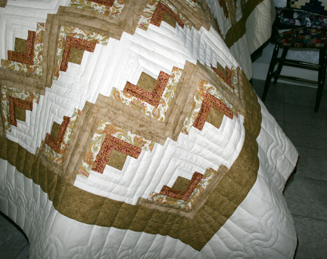 This quilt has been sold. We'd be happy to check with the quilters we work with to see if a similar quilt is nearly completed. Or if you'd like to place a custom order for this quilt, please email us, or call at 610-880-0107, and we can discuss fabric colors, pattern, quilting designs and size. You can also supply us with fabric of your choice, as long as it is 100 percent cotton, or a cotton-poly blend.