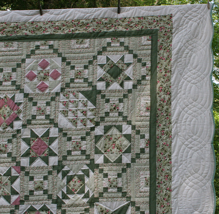 The dominate colors are mauve and sage with touches of rose. The Quilter is an Amish lady who lives in Lancaster County, PA $895.00 Product ID: q76 |