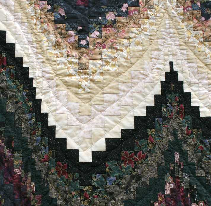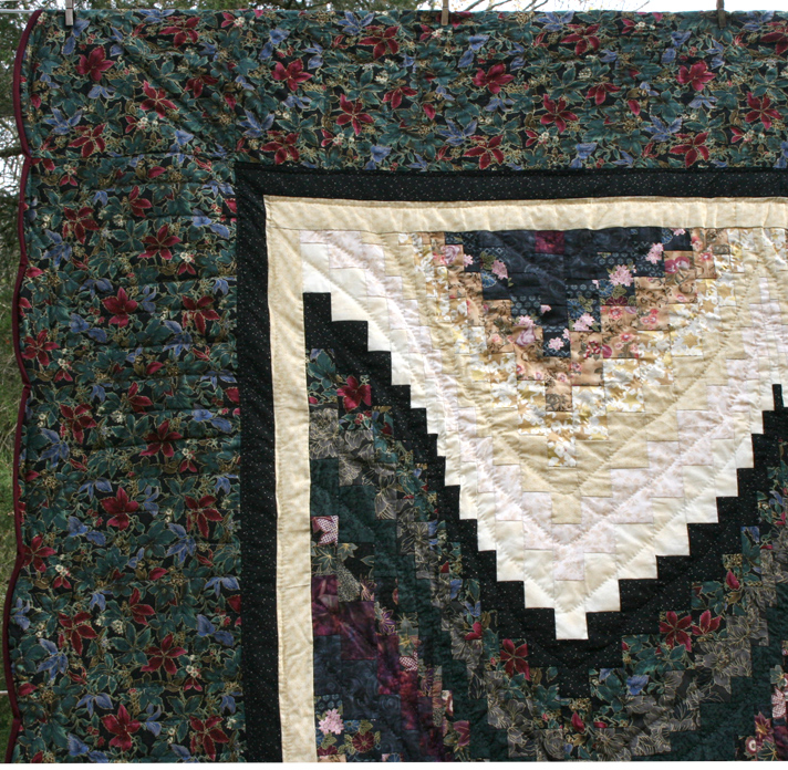 This quilt has been sold. We'd be happy to check with the quilters we work with to see if a similar quilt is nearly completed. Or if you'd like to place a custom order for this quilt, please email us, or call at 610-880-0107, and we can discuss fabric colors, pattern, quilting designs and size. You can also supply us with fabric of your choice, as long as it is 100 percent cotton, or a cotton-poly blend.