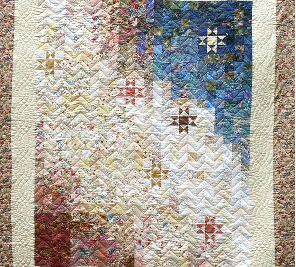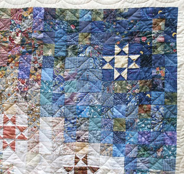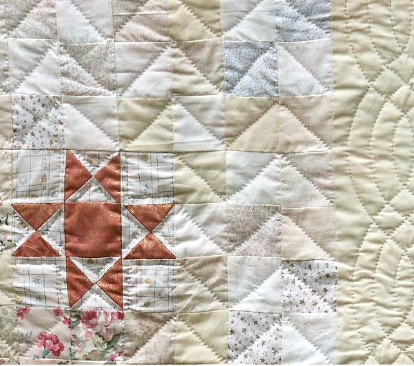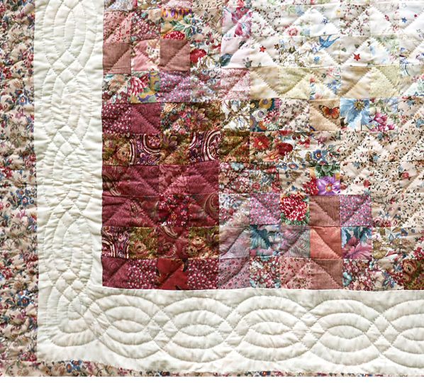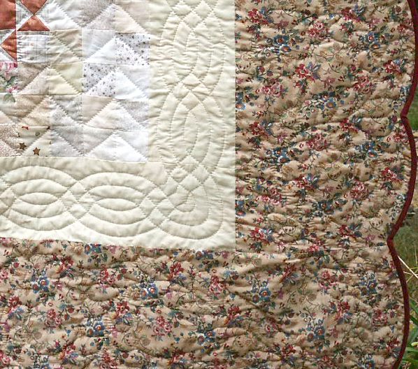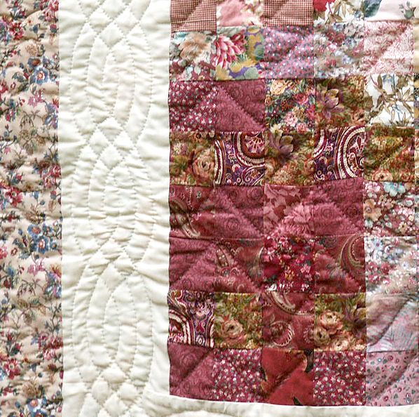 This quilt has been sold. We'd be happy to check with the quilters we work with to see if a similar quilt is nearly completed. Or if you'd like to place a custom order for this quilt, please email us, or call at 610-880-0107, and we can discuss fabric colors, pattern, quilting designs and size. You can also supply us with fabric of your choice, as long as it is 100 percent cotton, or a cotton-poly blend. Size: 97"wide by 112" long